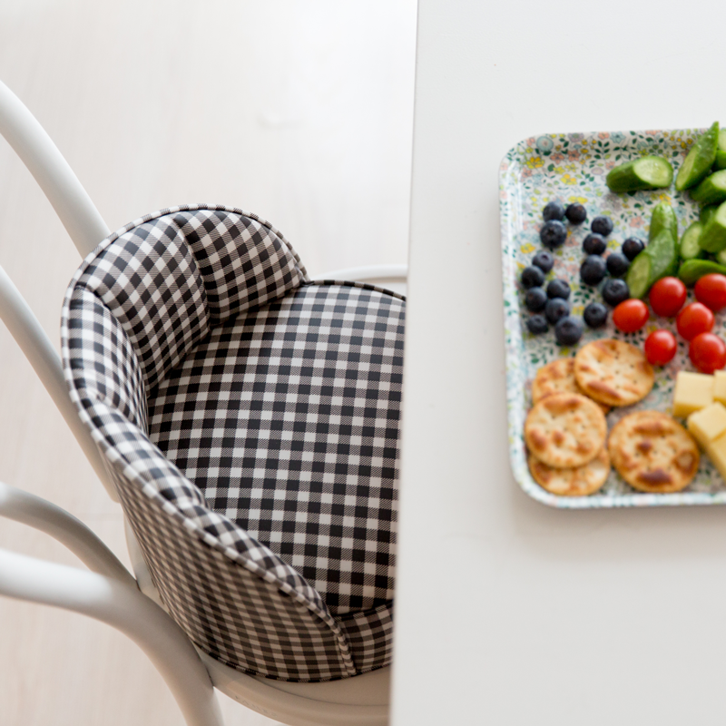 Upsy's are laminated cotton upholstered little boosts - for just the right height at the dining table or a teddy bears picnic!