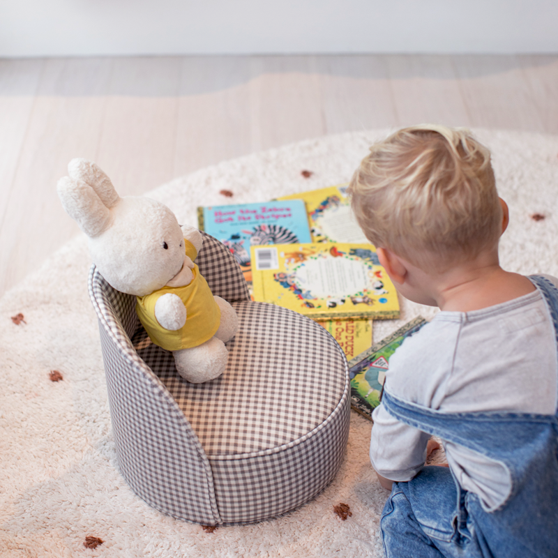 Upsy's are laminated cotton upholstered little boosts - for just the right height at the dining table or a teddy bears picnic!